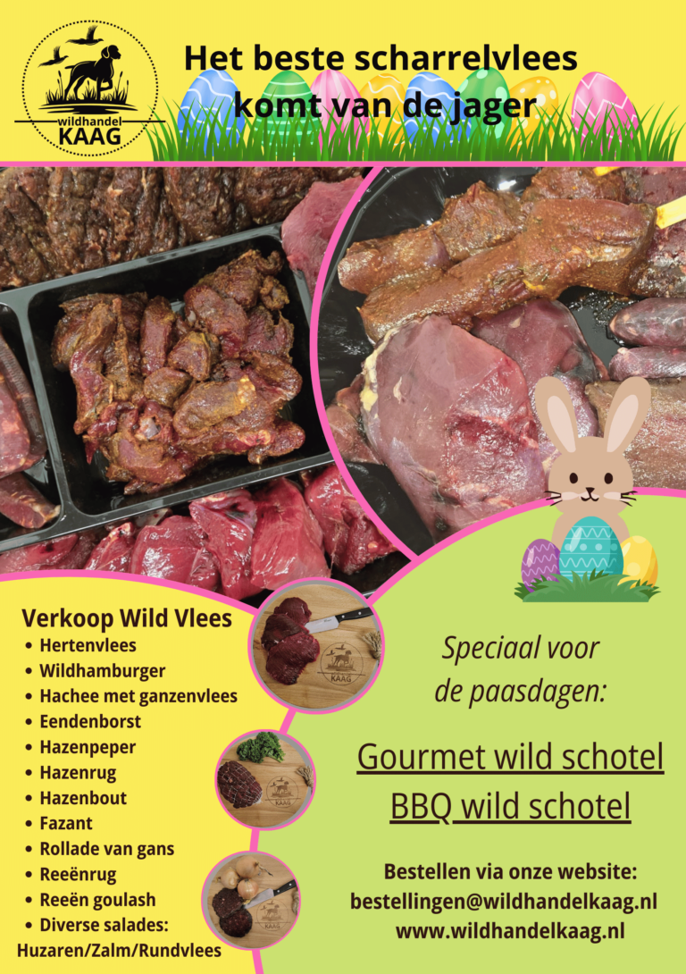 Vlees van wild wat in de natuur geleefd heeft, deze dieren worden selectief bejaagd en hebben een goed leven gehad.